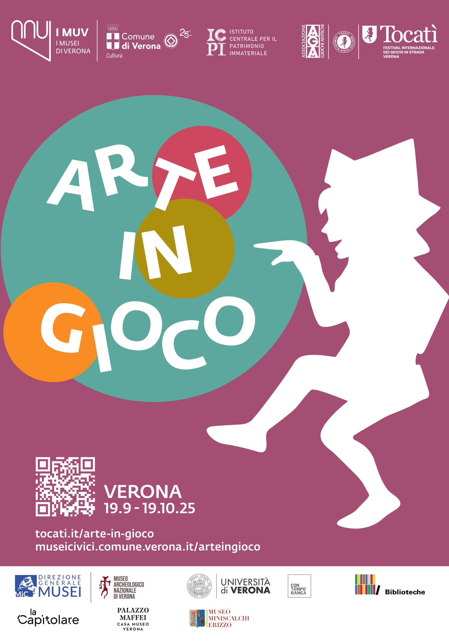 Arte in gioco è un format espositivo che ha preso avvio nel 2024 nel contesto del Tocatì, Festival internazionale dei giochi in strada: un percorso tematico che coinvolge le sedi e le collezioni dei Musei Civici e di altri luoghi della cultura veronesi, con un calendario di iniziative sul tema ludico inteso come luogo di dialogo e trasmissione, ma anche terreno di conoscenza, fantasia e divertimento. Ideato dall’Assessorato alla Cultura, Turismo e Rapporti con l’UNESCO del Comune di Verona e dai Musei Civici, in collaborazione con Associazione Giochi Antichi (AGA) e l’Istituto Centrale per il Patrimonio Immateriale del Ministero della Cultura (ICPI), il palinsesto di Arte in Gioco propone un originale sistema di connessioni tra archeologia, storia dell’arte antica e contemporanea, letteratura, scienze naturali.
